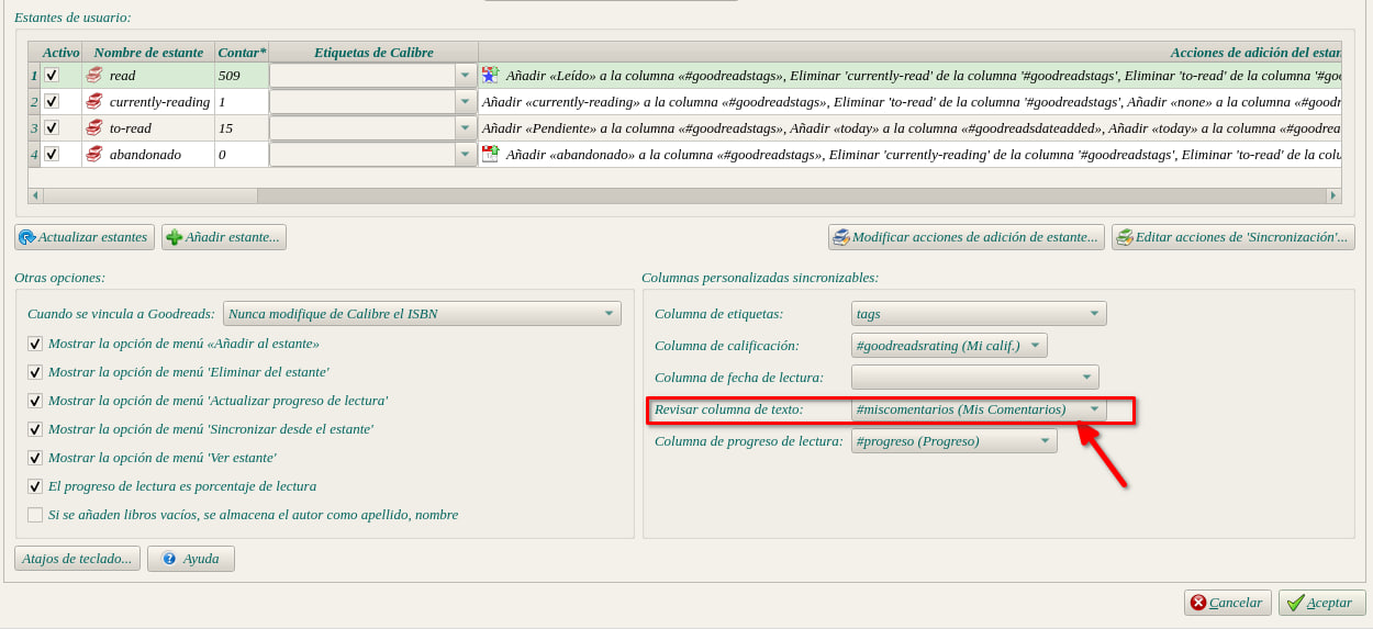 Si queremos traer los comentarios que hacemos de los libros de goodreads a nuestra biblioteca de calibre.