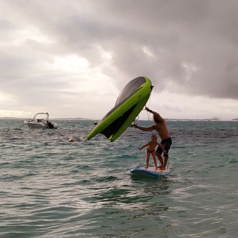Первый раз винг лучше попробовать без фойла с большеобъемной доской для SUP. Так Вы сможете разобраться с управлением винга и научитесь ловить ветер. Это абсолютно безопасно, поэтому можно развлекаться всей семьёй.