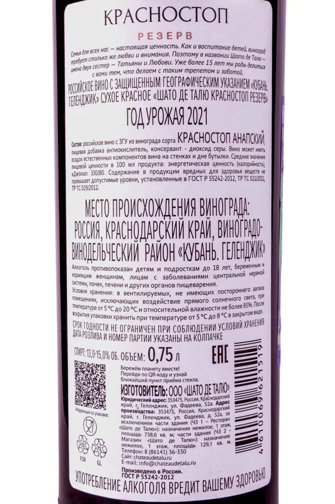 Вино красностоп резерв 87 фото