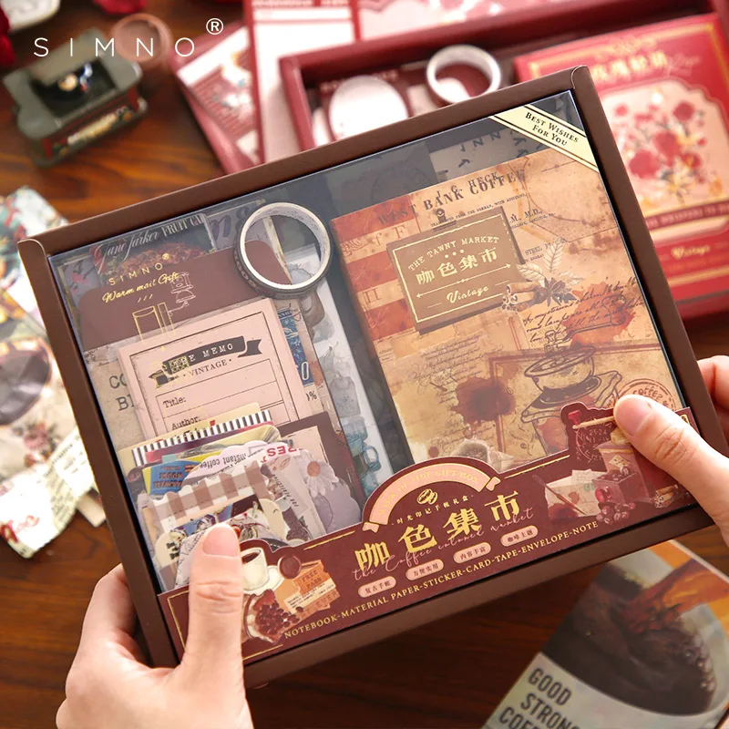 DiDesYgvHere you can buy Vintage Handbook Set Gift Box Handbook Material Gift Box Kawaii Tape Note Card Material Package Birthday Graduation Gift with free delivery to your post office.