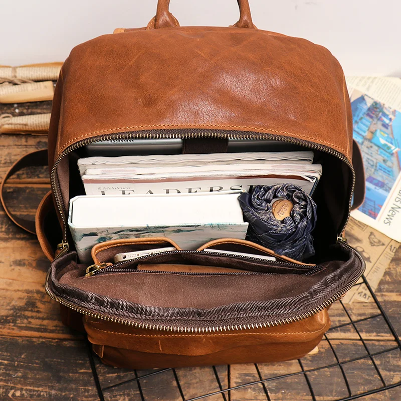 lAznDzfmЗдесь вы сможете купить Vintage Men and Ladies Outdoor Travel Backpack School Book Cowhide Backpack Brown Zipper 14 Inch Computer Notebook Bag с бесплатной доставкой до вашего почтового отделения.