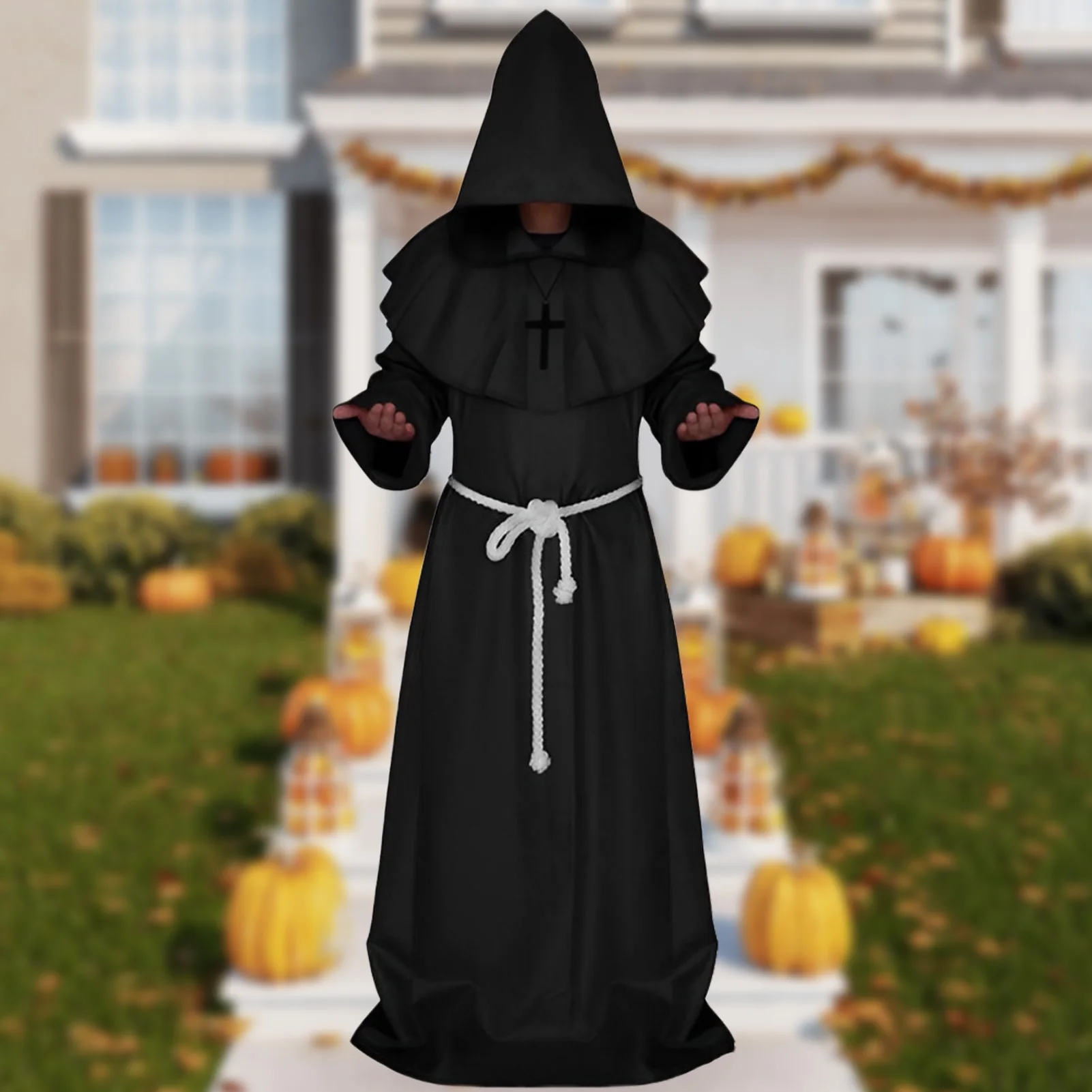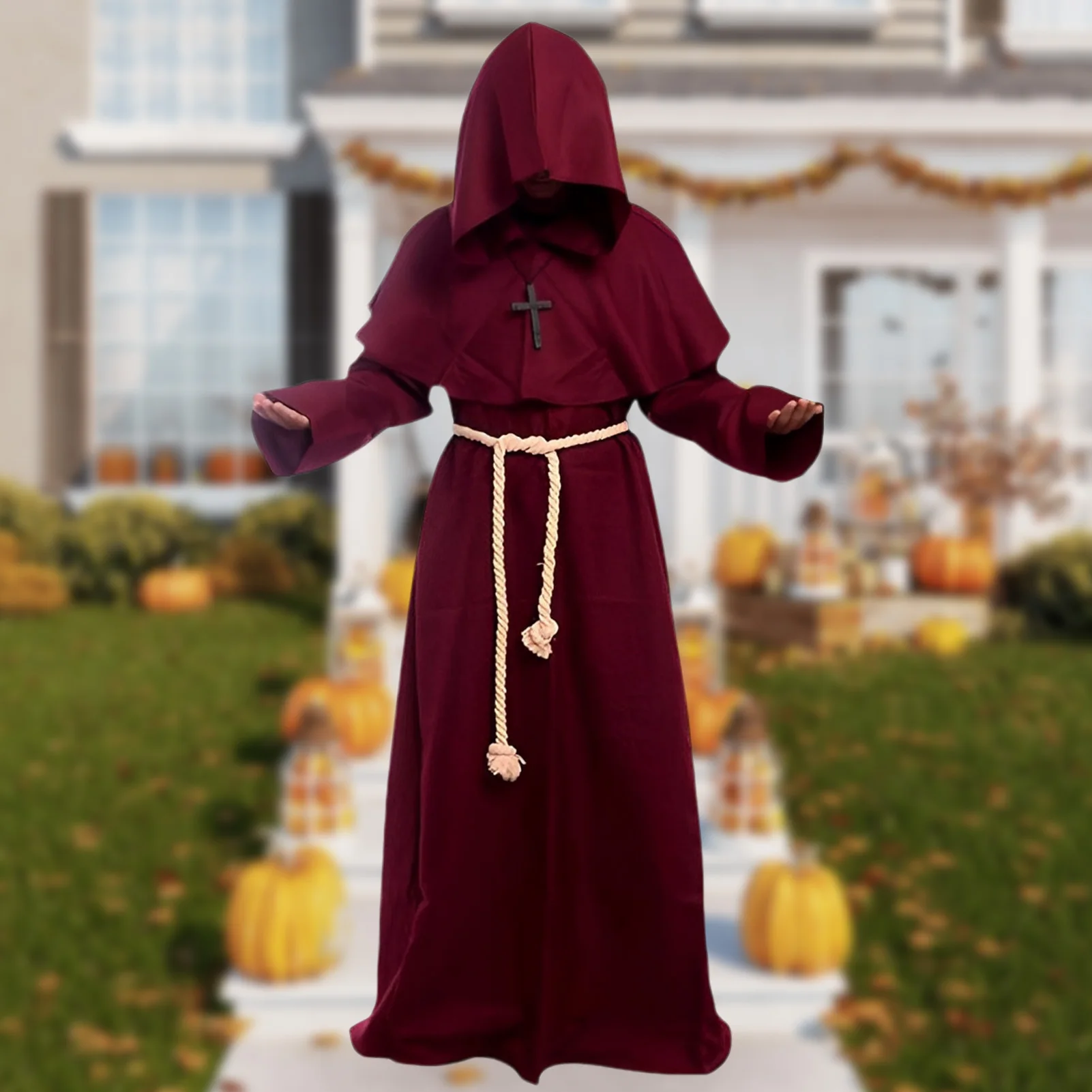 umDJTejgBfHere you can buy Vintage Style Renaissance Priest Cape Robe Solid Color Men Gothic Hooded Robe Oversized with Necklace Waist Rope Vacation Outfit with free delivery to your post office.