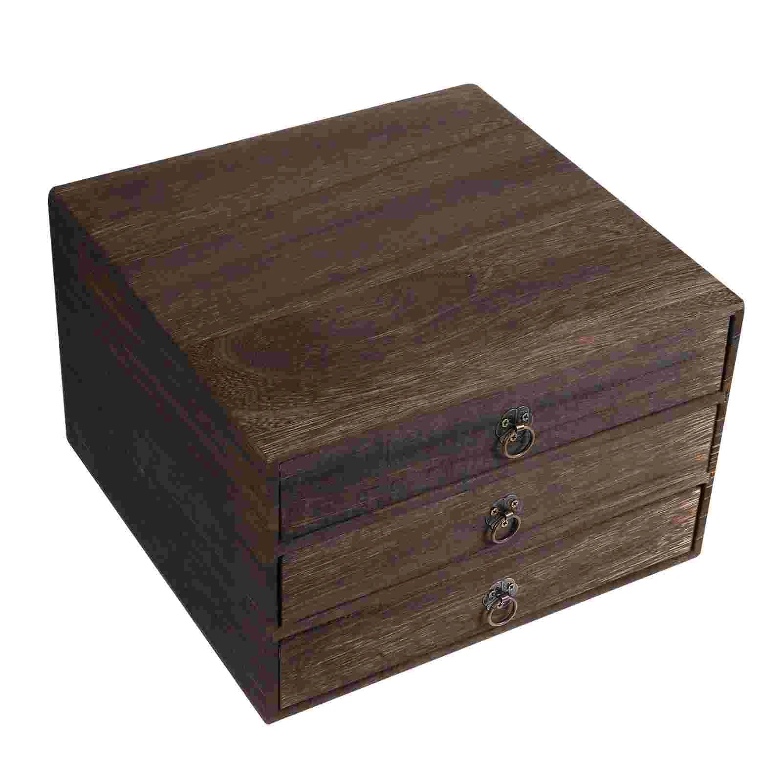 FaFlwlCEDAHere you can buy Vintage Wood Desktop Organizing Box Multi-Layer Drawer Type Jewelry Storage Case Dustproof Document Box With Handle with free delivery to your post office.