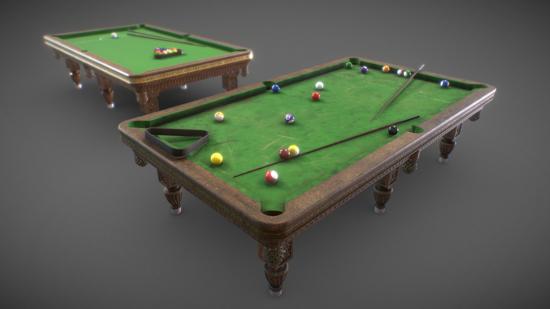 Vintage pool table threesome