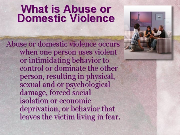 Insults, threats, emotional abuse, and sexual coercion all constitute domestic violence . Some perpetrators may use children, pets, or other family members as emotional leverage to get their victim . . .