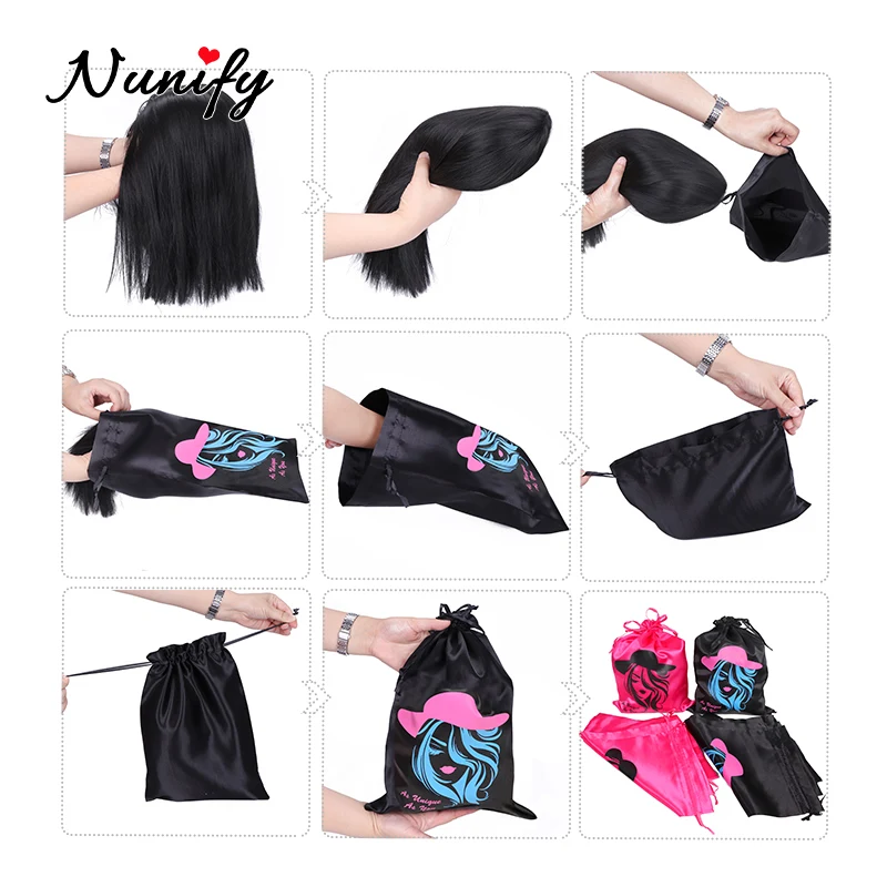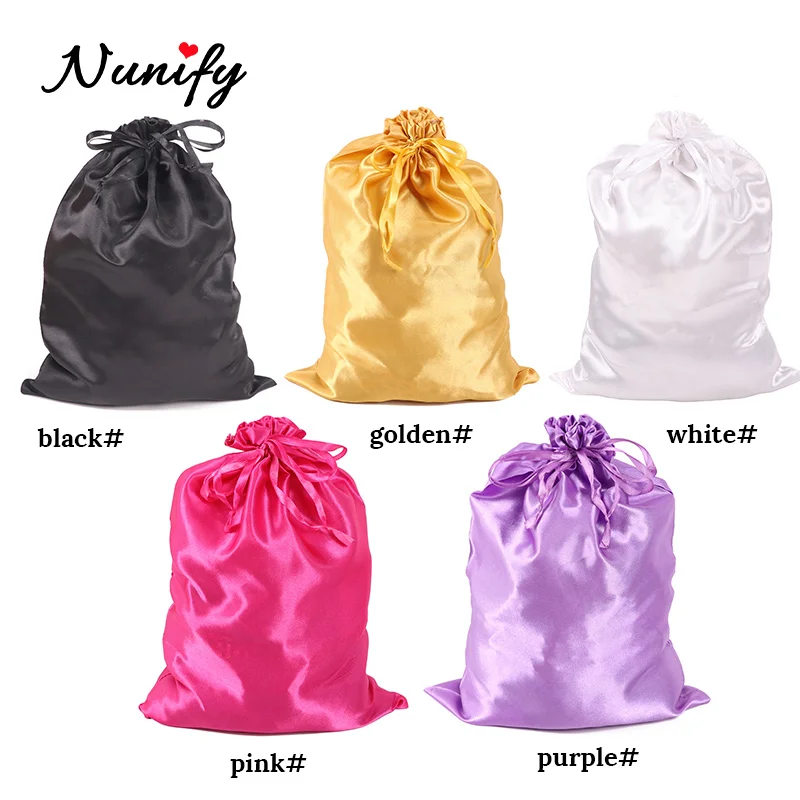 Virgin Hair Extensions Packaging Bags Drawstring Satin Wig Bag Silk Satin Bags For Packaging Wig Nunify Collection Custom System - Купить с бесплатной доставкой