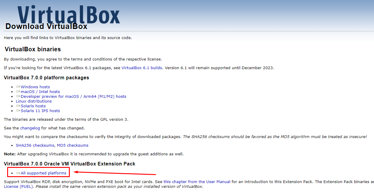 - Для скачивания файла VirtualBox Extension Pack перейди 👉🏻 по ссылке
