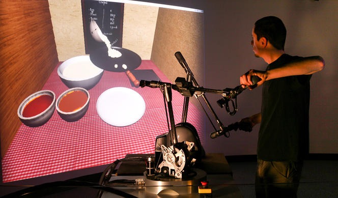 Эти исследования повлекли за собой другие, направленные на изучение всевозможных способов восприятия: слуха, осязания, вкуса… а также малоизвестного чувства, которое позволяет нам отслеживать положение тела в пространстве, — проприоцепции. Таким образом, совместное использование сенсорных сигналов, не соответствующих действительности, и шлема виртуальной реальности, который скрывает тело пользователя, позволяет создать новую форму псевдовосприятия — виртуальное перевоплощение. Один из самых известных примеров этого эффекта относится к концу 1990-х годов и называется «иллюзия резиновой руки». Эксперимент заключается в следующем: участник видит перед собой резиновую руку, его собственная находится вне поля зрения. Экспериментатор синхронно водит кисточкой по обеим рукам. Спустя какое-то время участник уже не может определить, какая из них настоящая. Сильная стимуляция (например, удар по резиновой руке) заставляет испытуемого отдернуть настоящую руку, как если бы на него действительно замахнулись.