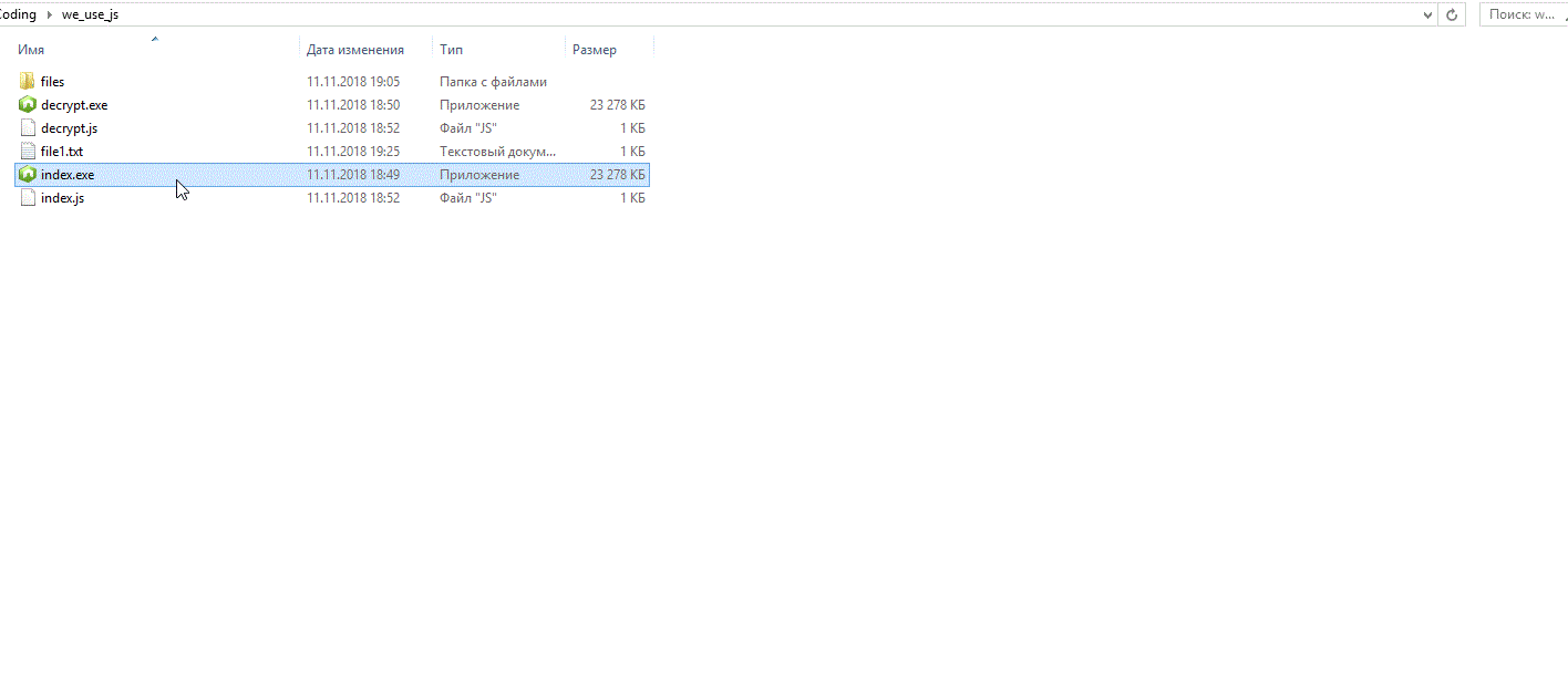 Остался последний пункт. Нам нужно скомпилировать js в exe, но перед этим желательно добавить ввод в decrypt.js. Желательно удалить password.js и перенести код оттуда в index.js. Вот что мы написали: