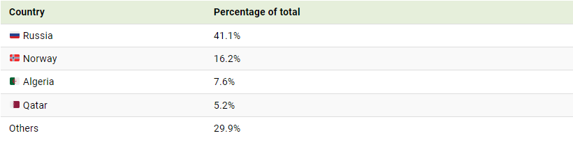 Looking further into energy imports reveals that Russia is the main supplier of crude oil, coal, and natural gas. Continue below for more details.