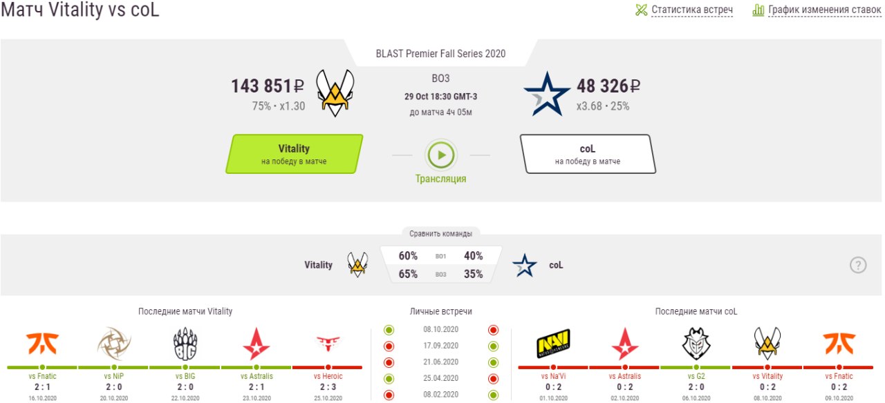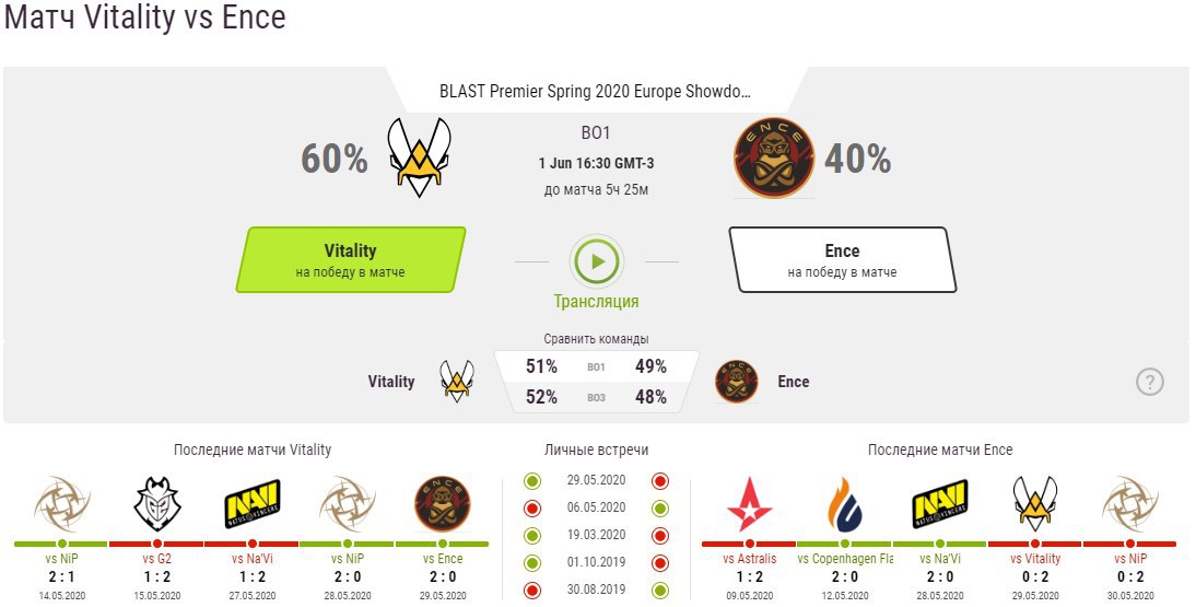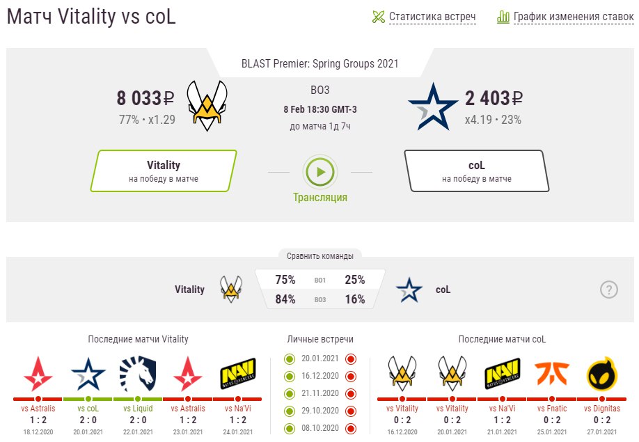 Vitality матч