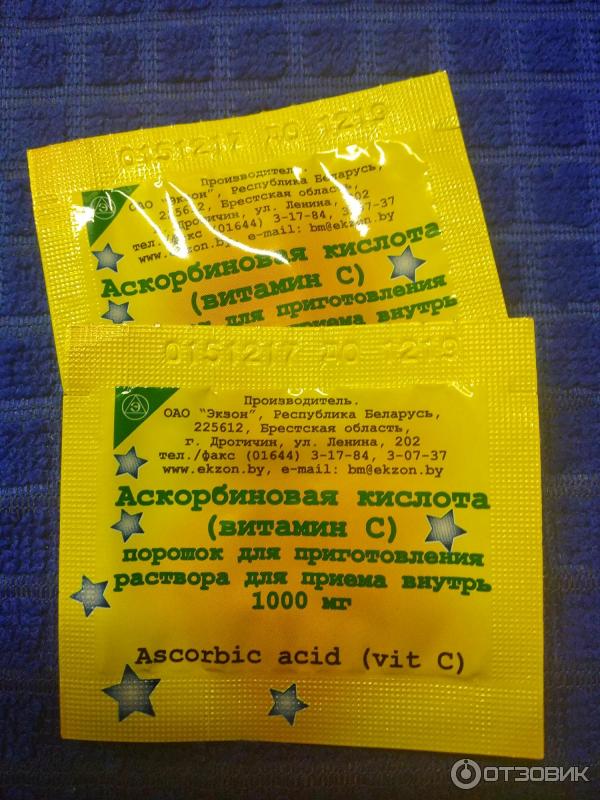 Аскорбиновая кислота ОАО "Экзон" (Витамин С) порошок для приготовления раствора для приема внутрь 1000 мг . - отзыв . Среднее: Среднее: 4 .3 (3 голоса) 3 0 . Категория: Товары для здоровья . Тип товаров: Аскорбиновая кислота . Бренд: Экзон .