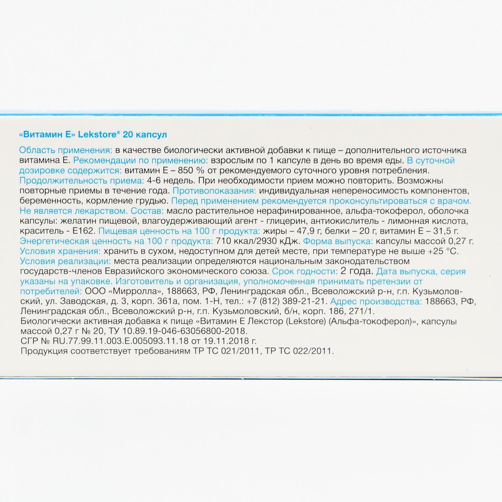 Витамин е состав капсулы
