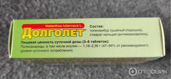 Долголет - биологически активная добавка, которая является дополнительным источником инулина, кремния, магния и калия . Действующее вещество . Концентрат клубней топинамбура .