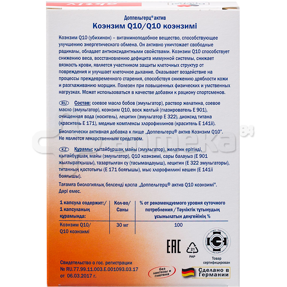 Доппельгерц Актив Коэнзим Q 10: Инструкция По Применению . . .