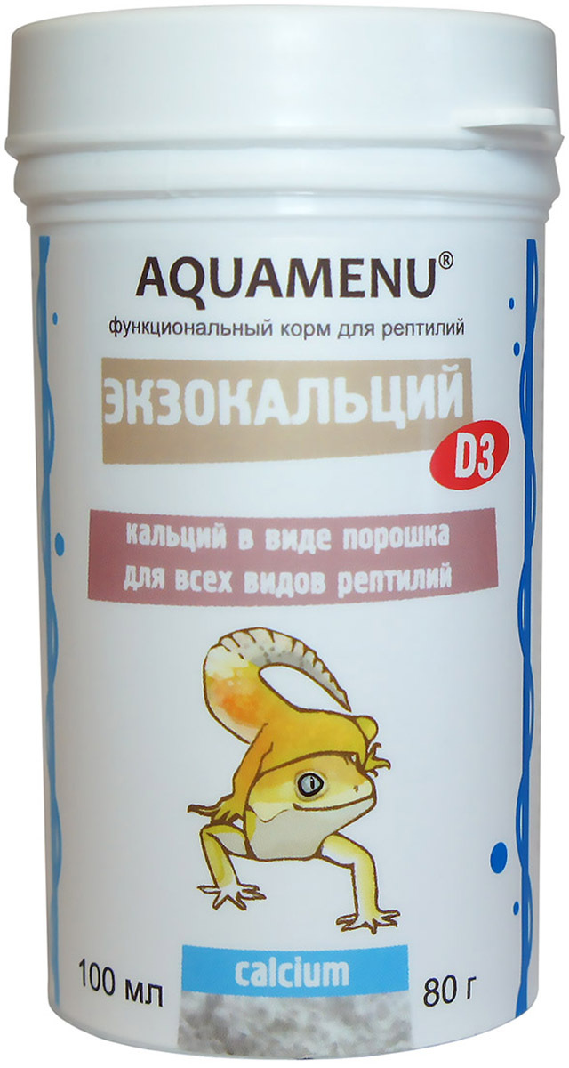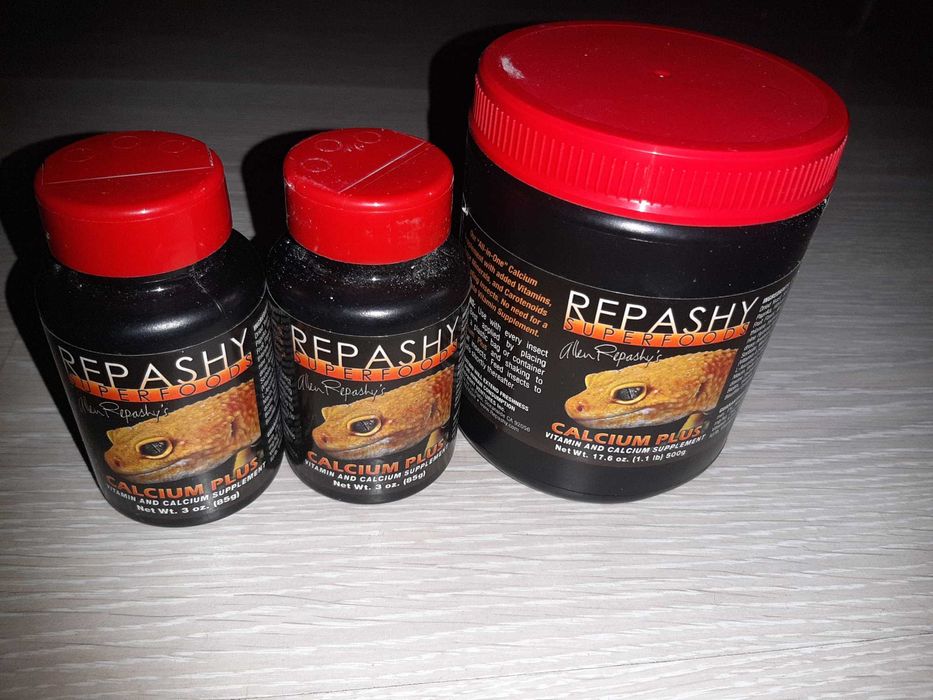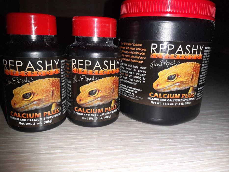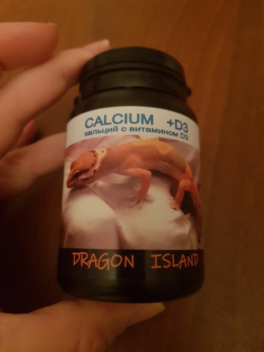 Calcium with vit .D3 Кальций+Д3 (от фирмы Реп-кал) - прекрасный чистейший кальций с добавкой витамина Д3 для усвоения кальция . Ставится в террариум в чистом виде в миску или плошку ослабленным эублефарам, эублефарам с признаками рахита и самкам во время беременности . Рептилии сами решают, когда им стоит полакомиться этим продуктом .