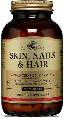Витамины для кожи, волос и ногтей, 120 табл . - Solgar (США) Уникальный комплекс на основе серы для улучшения состояния кожи, волос и ногтей создан специально для женщин улучшает состояние ногтей полезен для волос и кожи Описание: Витамины для кожи, волос, ногтей - разработка лучших специалистов американской компании Solgar .