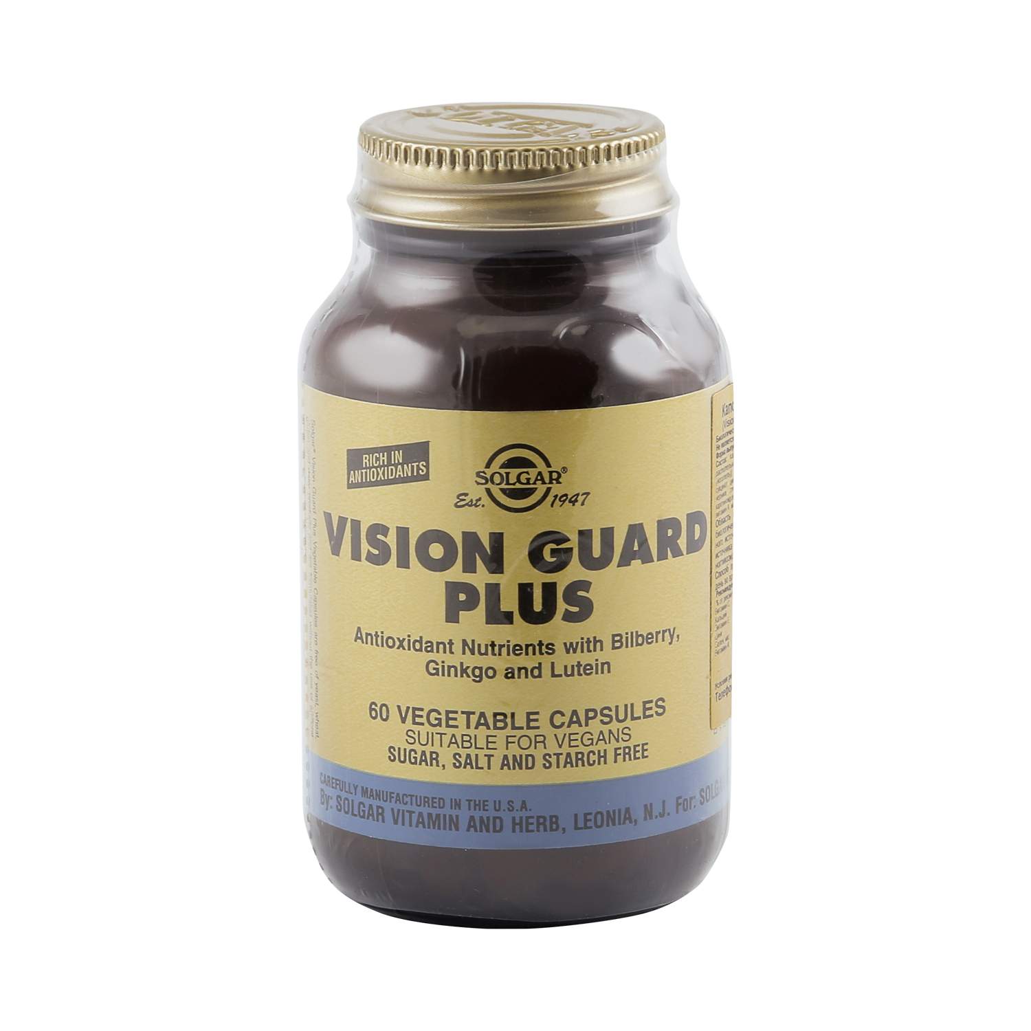 Лютеин, содержащийся в «Вижн Гард» от компании Solgar, является основным компонентом глаза, находящимся в самом центре сетчатки . Препарат показан при таких проблемах как дегенерация желтого пятна, связанная с действием свободных радикалов и катаракта .