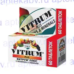 Витрум Плюс таблетки, покрытые оболочкой, 60 шт . от 675 ₽ Витаминки способствуют снижению риска развития недостатка минеральных веществ, гиповитаминозов, а так же в период выздоровления после различных заболеваний, операций, травм .Это знает любой взрослый человек, самое главное купить витаминки, которые реально будут помогать .