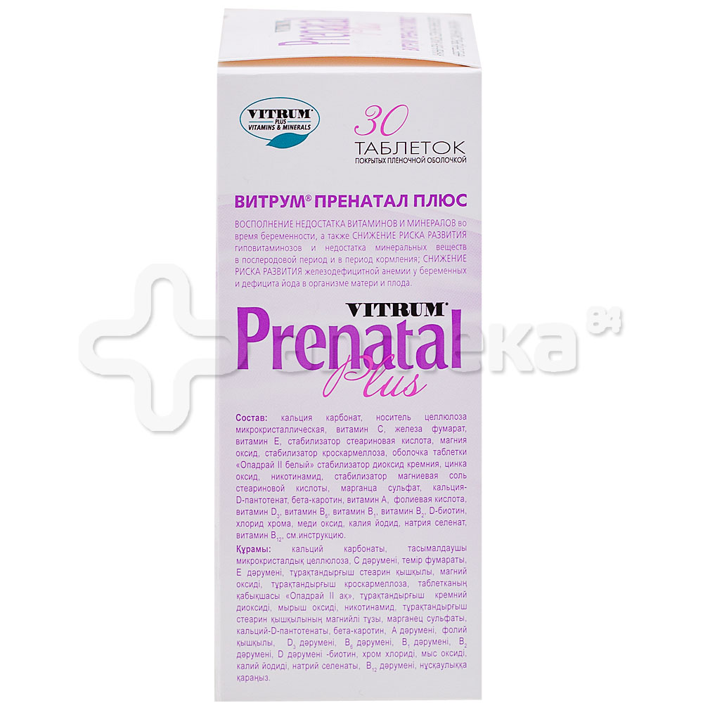 Основные показания и противопоказания к применению Витрум Пренатал Плюс: Профилактика и лечение гиповитаминозов и недостатка минеральных веществ в период подготовки к беременности, во время беременности и послеродовой период; Профилактика железодефицитных анемий у беременных, дефицита кальция в организме матери . Показать цитату
