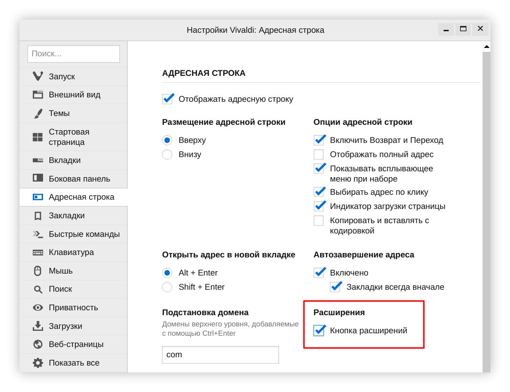 Vivaldi настройки