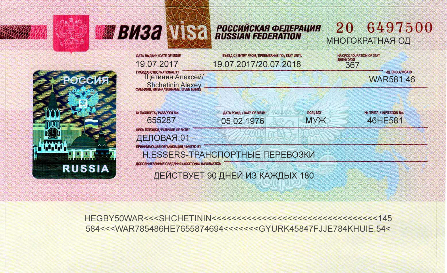 Виза въезда и выезда