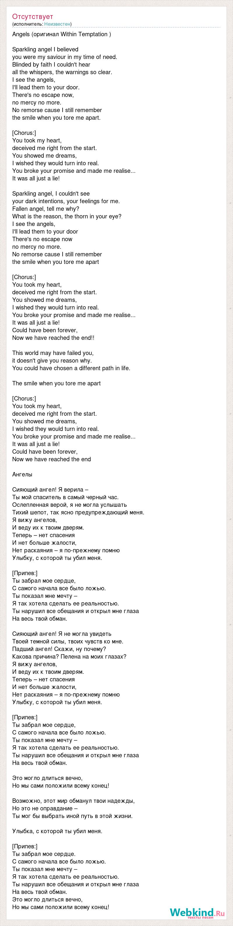 Перевод песен Within Temptation, тексты песен . Лингво . . .