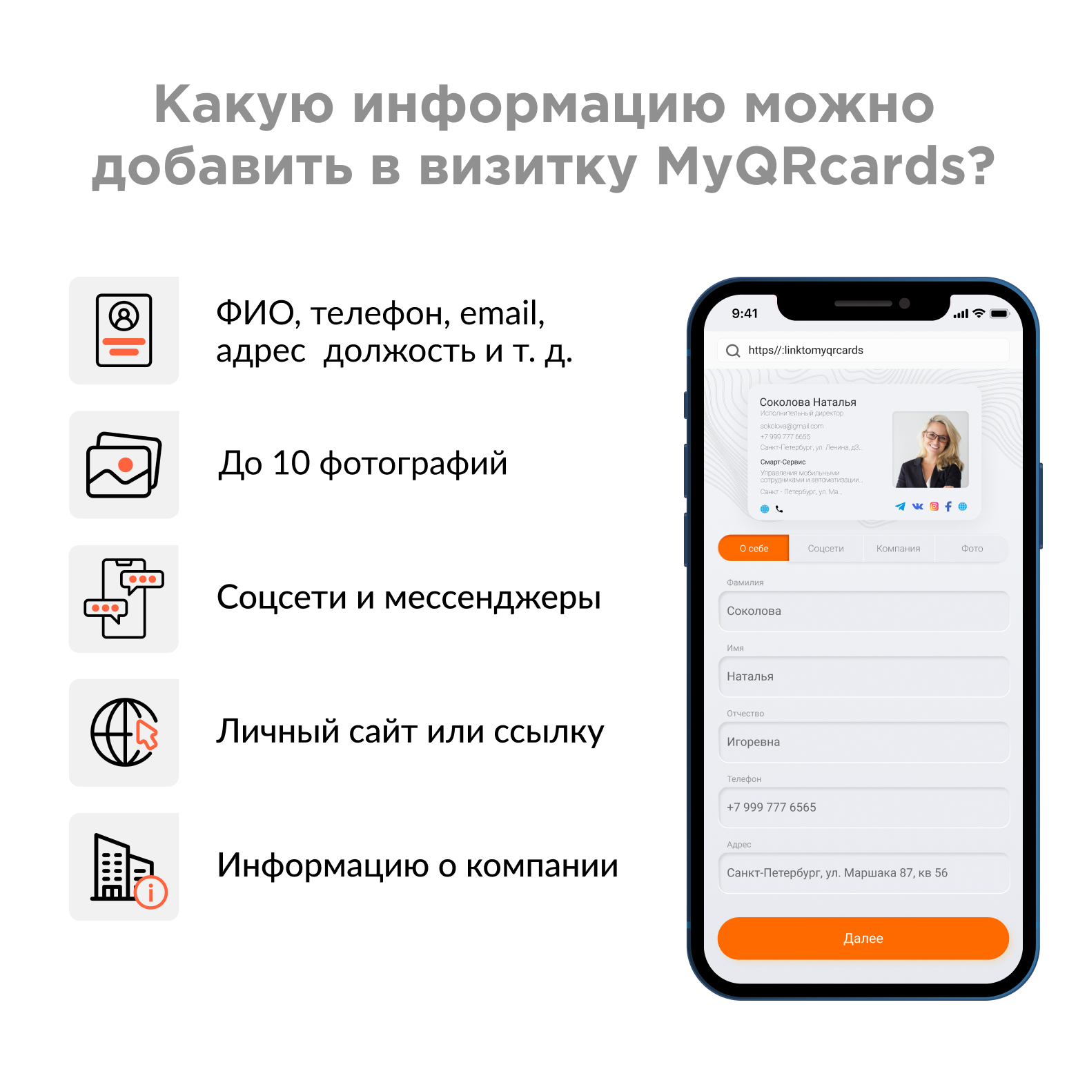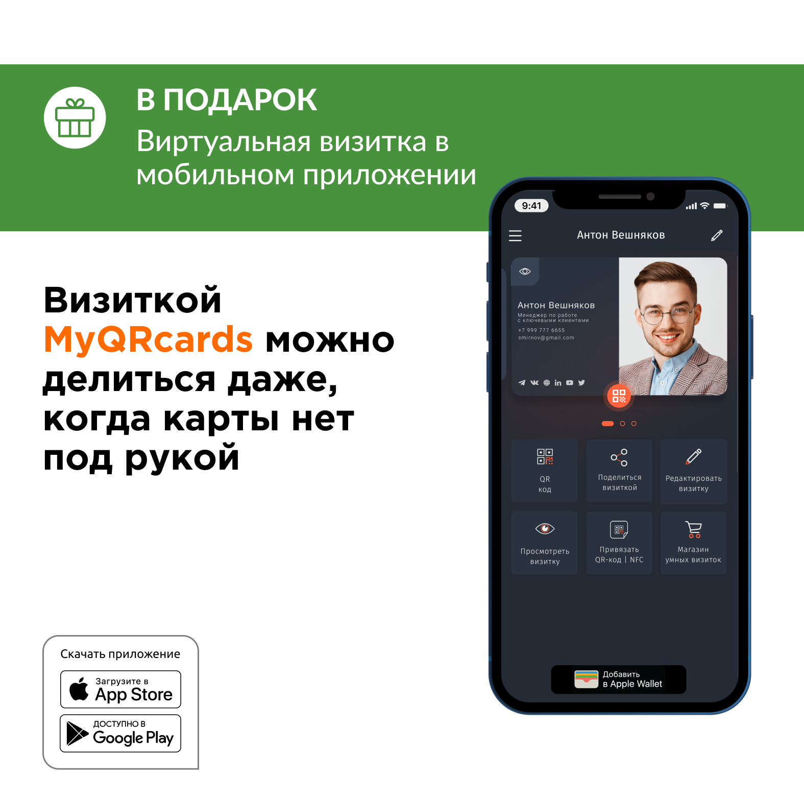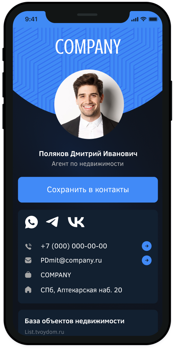 Визитка на телефоне андроид