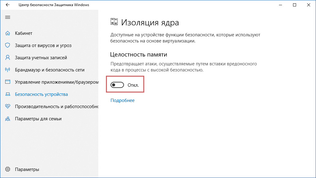 Включать ли целостность памяти
