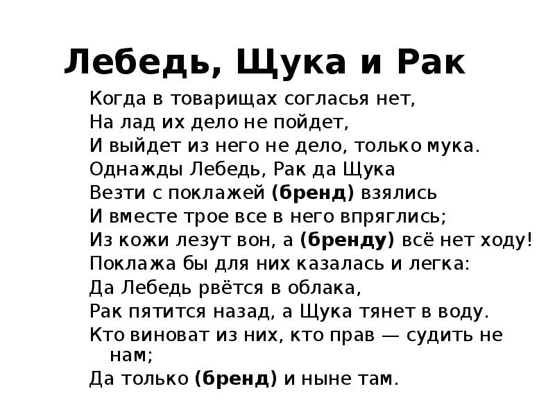 Включи басню щука рак и лебедь