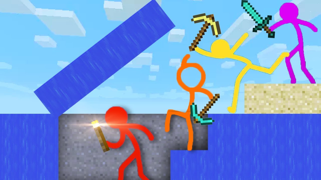 Включи стикмены против майнкрафт