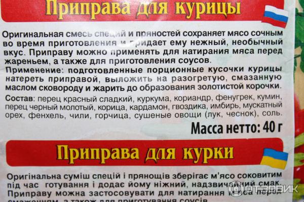 Вкус приправы для курицы