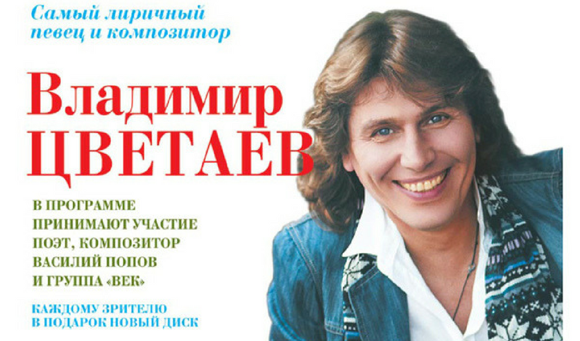 Владимир Цветаев - неоднократный участник телевизионного музыкального фестиваля «Песня года» . Его часто называют самым обаятельным певцом и композитором России . Сольные концерты певца - это феерические . . .