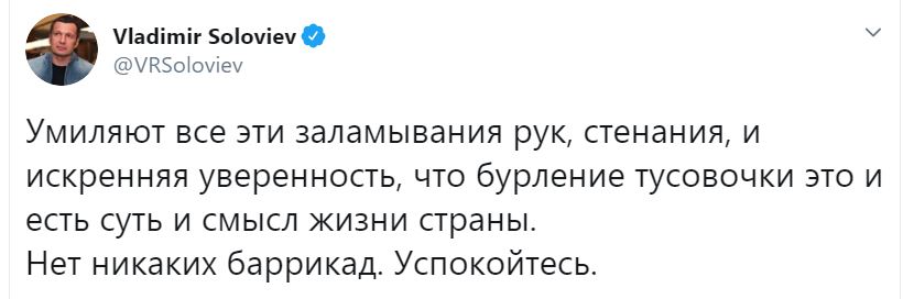 Соловьёва назвали лакеем . .