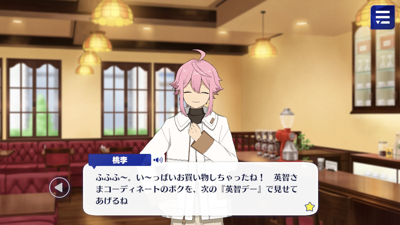 Юзуру: Эйчи-сама, ты просил нас зайти в это кафе после того, как мы закончим с покупками. Ты что-то хотел здесь взять?