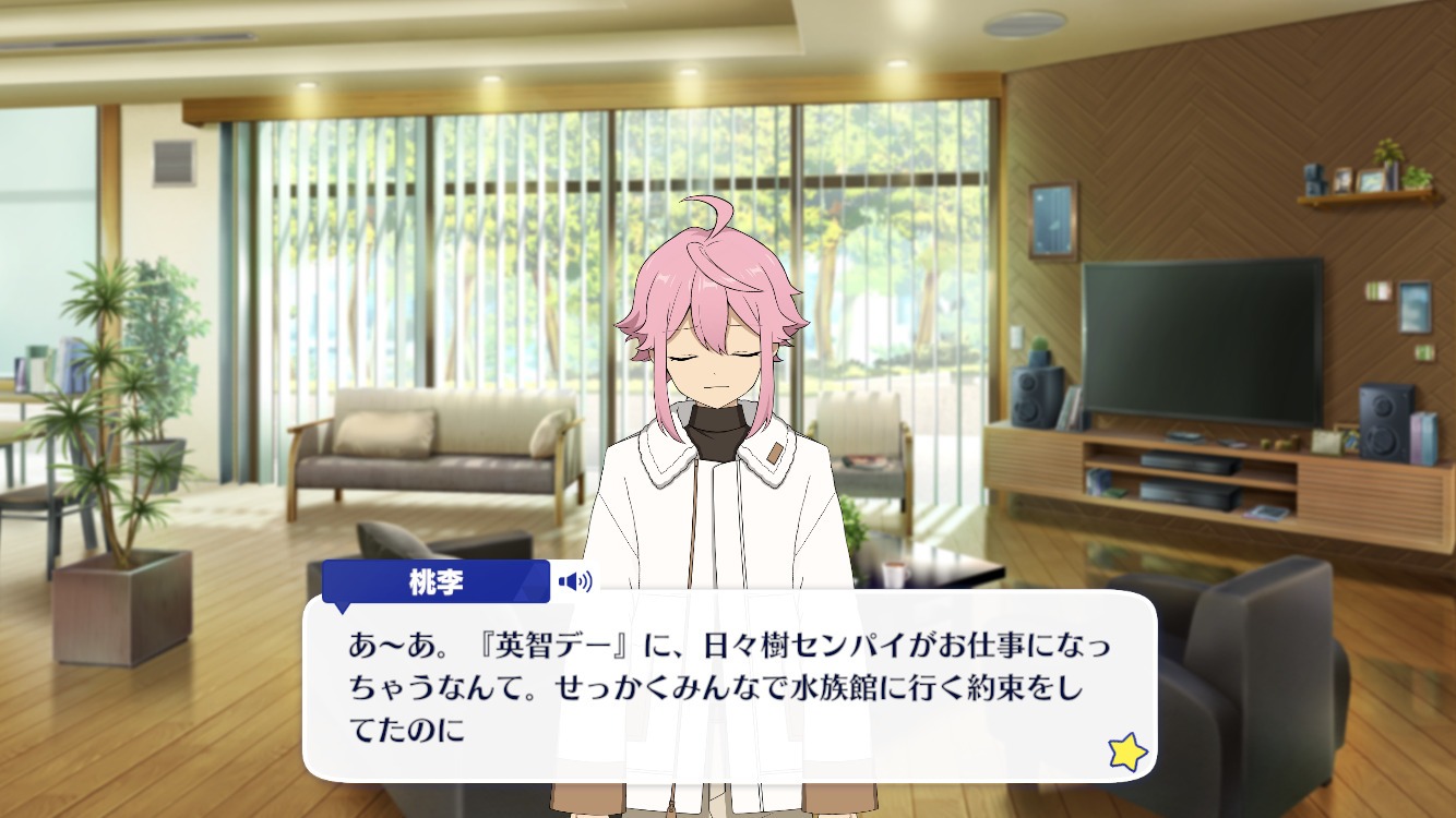Эйчи: ...А, понятно. Ты совершенно прав, Тори. Тогда мы оставим это испытание на следующий День Эйчи, когда сможем взять с собой Ватару ♪
