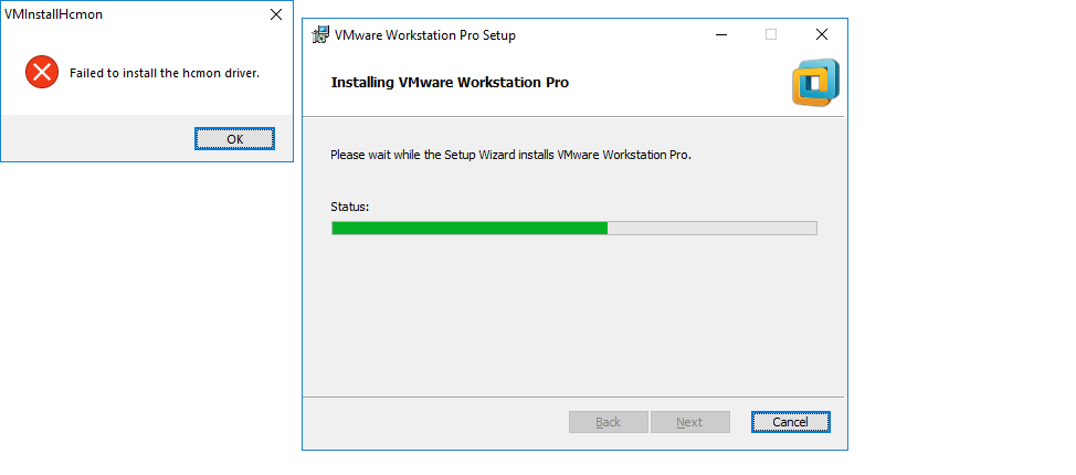 Vmware install failed