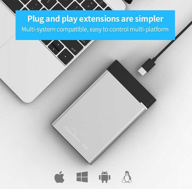 Внешний диск работает с высокой скоростью 550 Мб/с, совместим с Windows, Mac, подключается к портам USB 3 .1 Gen 2 и Gen 1, Thunderbolt 3, USB Type-C и USB Type-A, что делает его универсальным .