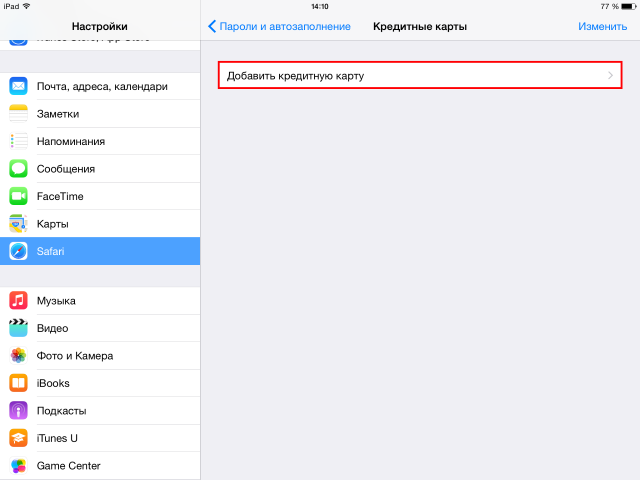 Внести карту в айфон