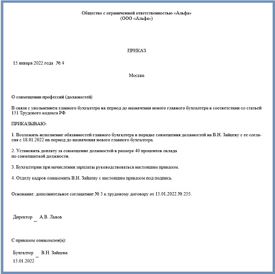 Внутреннее совмещение должностей оформление и оплата