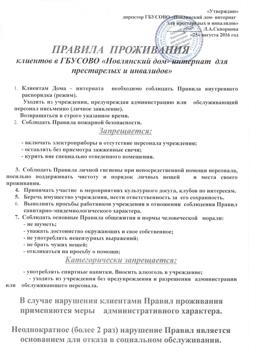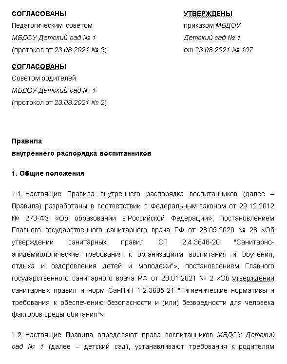 Внутренний распорядок снт