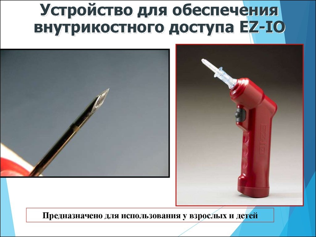 P.S. Использование внутрикостного введения лекарственных средств на догоспитальном этапе было регламентировано и в Российской Федерации. В настоящее время оснащение выездных бригад СМП внутрикостными наборами предусмотрено Приказом МЗ РФ от 07.08.2013 № 549н.