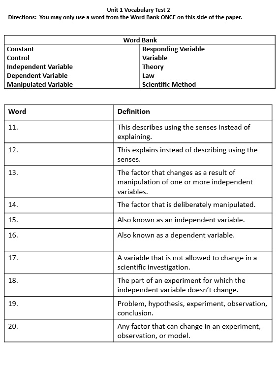 Vocabulary assessment