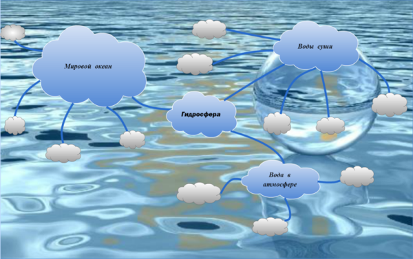 Вода в атмосфере, находится в трёх состояниях: газообразном, жидком и твёрдом .По сравнению с другими частями гидросферы, содержащаяся в воздухе вода, составляет очень небольшую долю, всего 0,001% .