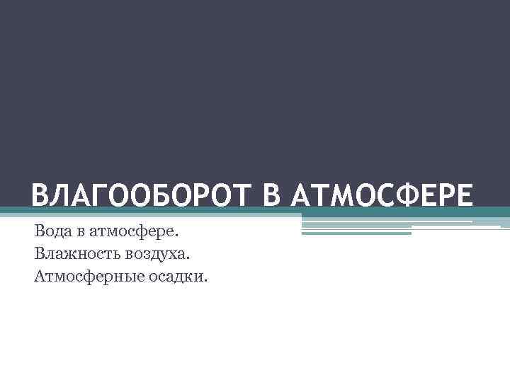 Шаблоны, картинки для . . . Презентация на тему Презентация на тему Вода в атмосфере, предмет презентации: География . Этот материал содержит 25 слайдов .
