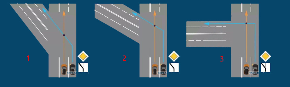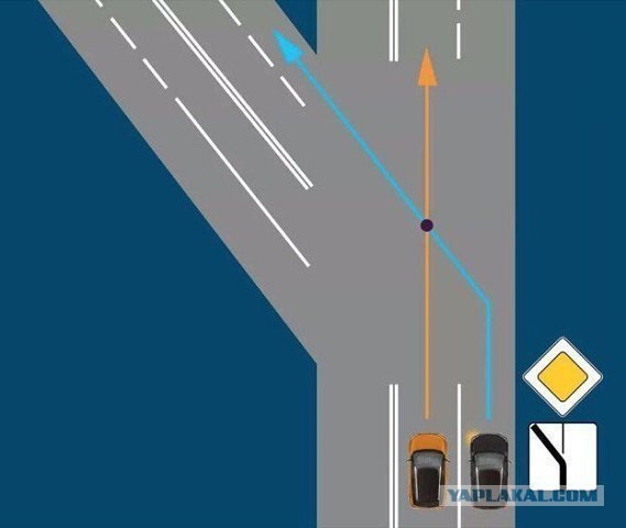 На одном популярном развлекательном ресурсе наткнулся на вопрос: на приведенной картинке кто должен уступать, черный или оранжевый? И Боже мой — мнения разделились практически поровну…