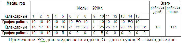 Водитель график рабочего времени