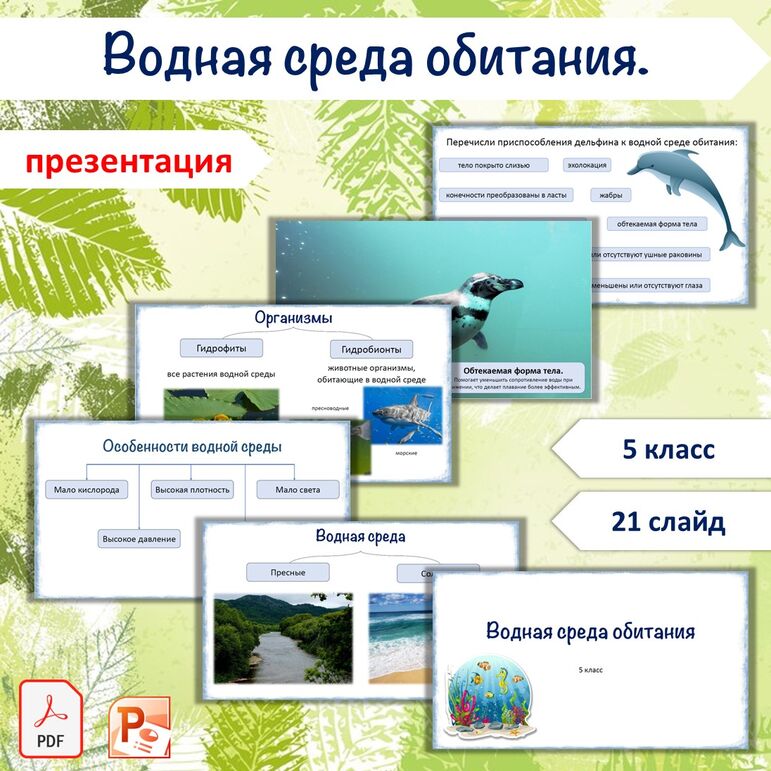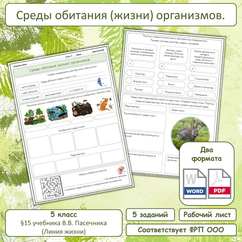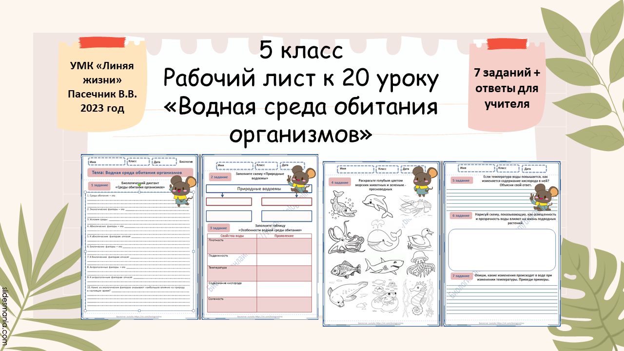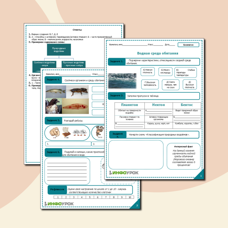 Водная среда обитания 5 рабочий лист