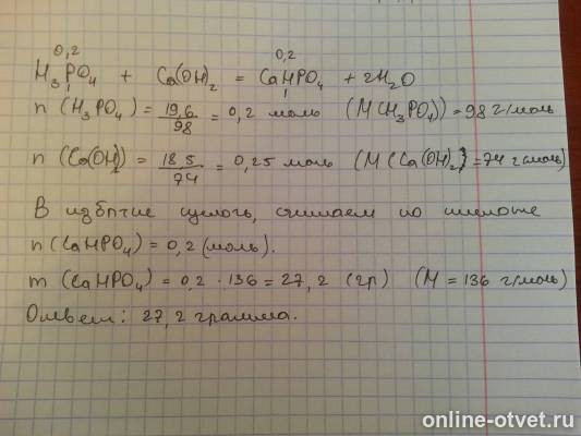 вопрос - Водный раствор содержащий гидроксид кальция массой 3,7 г, поглотил оксид углерода объёмом 1,68 л . определите массу осадка, если выход реакции составил 80% - ответ .com