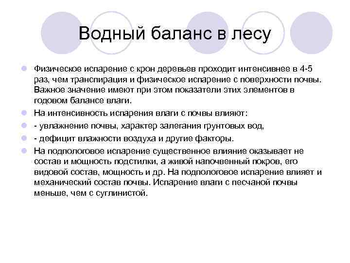 Водный баланс пример